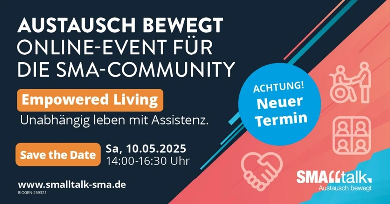 Einladung zum SMA Online-Event „Empowered Living – unabhängig Leben mit Assistenz“ Auch im Frühjahr 2025 gibt es wieder ein “Austausch Bewegt” SMA Online-Event von Biogens Plattform SMAllTalk, welches auf wichtige… …mehr